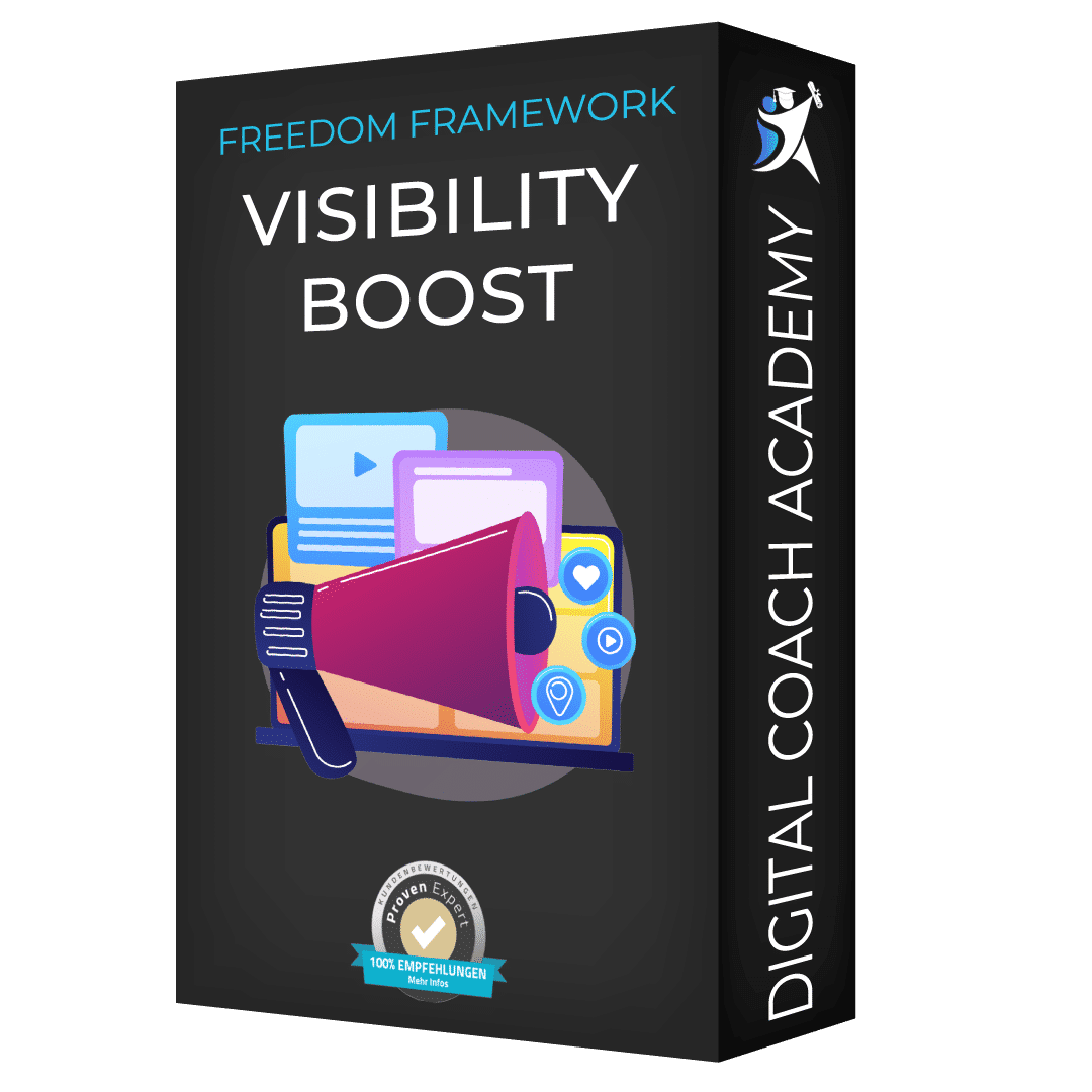 Mit dem Visibility Boost, dem dritten Modul des Freedom Frameworks, lernst du, wie du dich und deine Marke strategisch präsentierst, Menschen erreichst und langfristig im Gedächtnis bleibst.